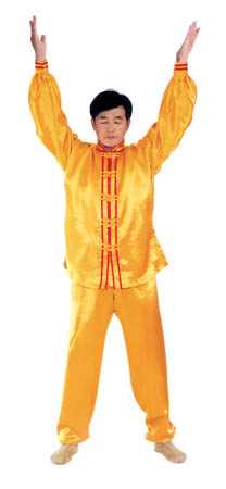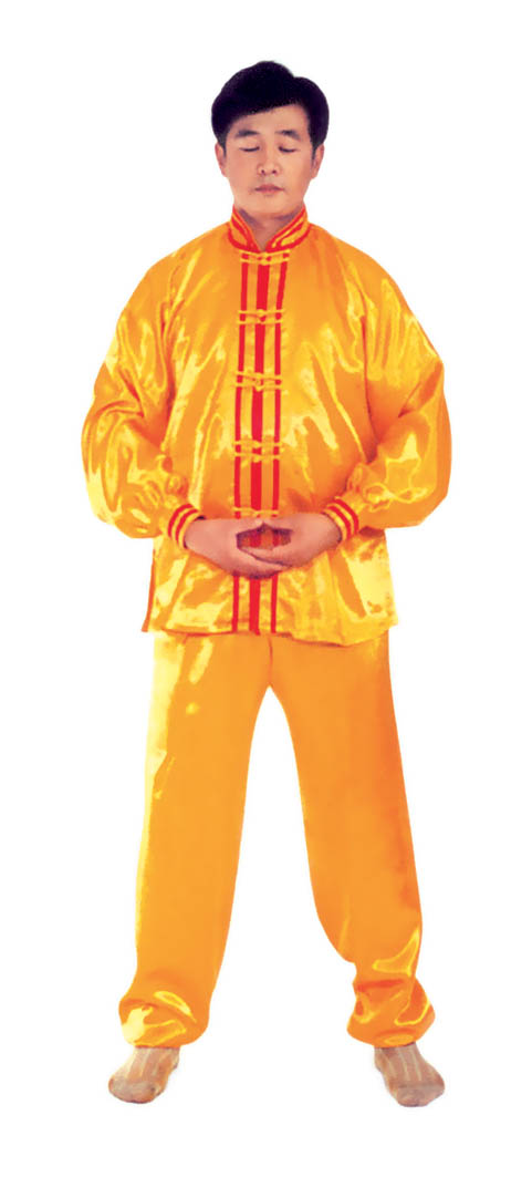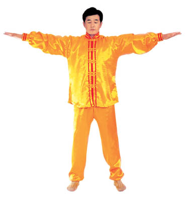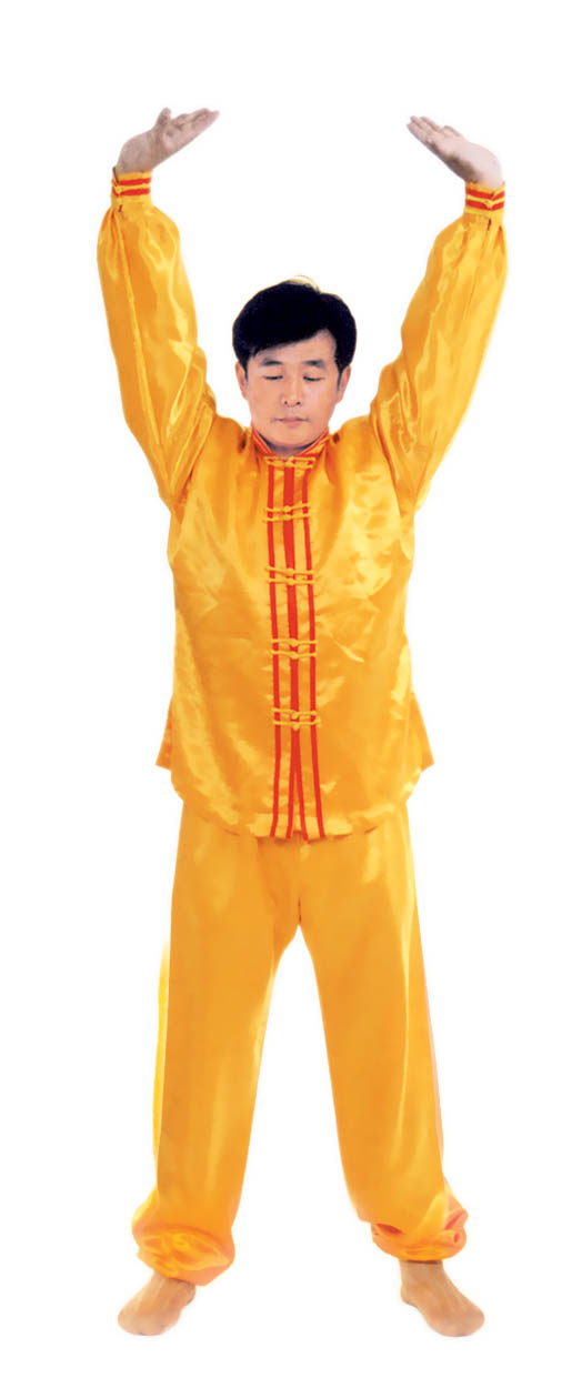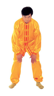 Thế dự bị—Hai chân đứng rộng bằng vai, đứng thẳng tự nhiên, hai chân hơi cong một chút, chỗ gối và háng đặt ở trạng thái chùng, toàn thân buông lỏng, lỏng nhưng không oải. Hàm dưới hơi thu, lưỡi đặt hàm trên, hàm răng hơi hở một chút, môi miệng ngậm lại, hai mắt nhắm khẽ, nét mặt mang ý an hoà.