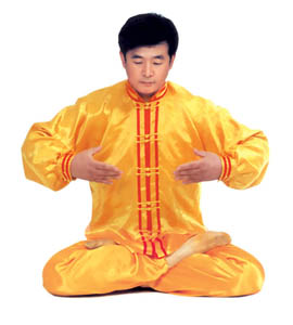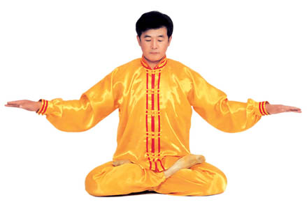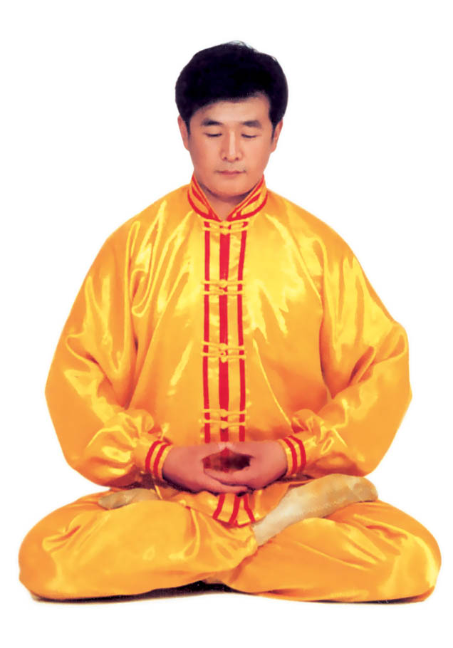 Thế dự bị—Ngồi thế xếp bằng. Lưng ngay cổ thẳng, hàm dưới hơi thu, lưỡi đặt hàm trên, hàm răng hơi hở một chút, môi miệng ngậm lại. Toàn thân buông lỏng, lỏng nhưng không oải, hai mắt nhắm khẽ, tâm sinh từ bi, mang theo ý an hoà. Hai tay kết ấn xếp tại bụng dưới (hình 5-1), dần dần nhập tĩnh.
